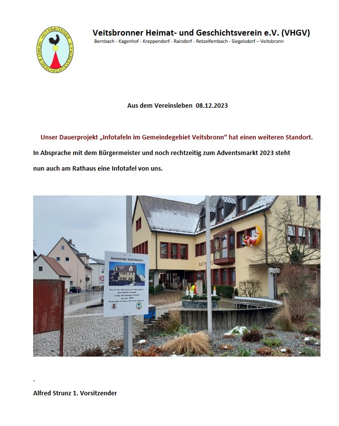 Standort: Im Wiesengrund hinter dem Veitsbronner Rathaus am Fußgängerweg.
